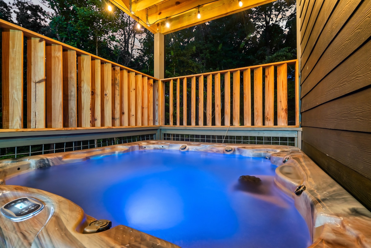 The highlight of this gorgeous cabin in the woods is the three levels of well-built private decks where you can relax and enjoy the majestic natural environment. Enjoy your morning coffee in the fresh mountain air as you take in the sights and sounds of nature, or have a relaxing soak in the private hot tub while enjoying the stunning views.