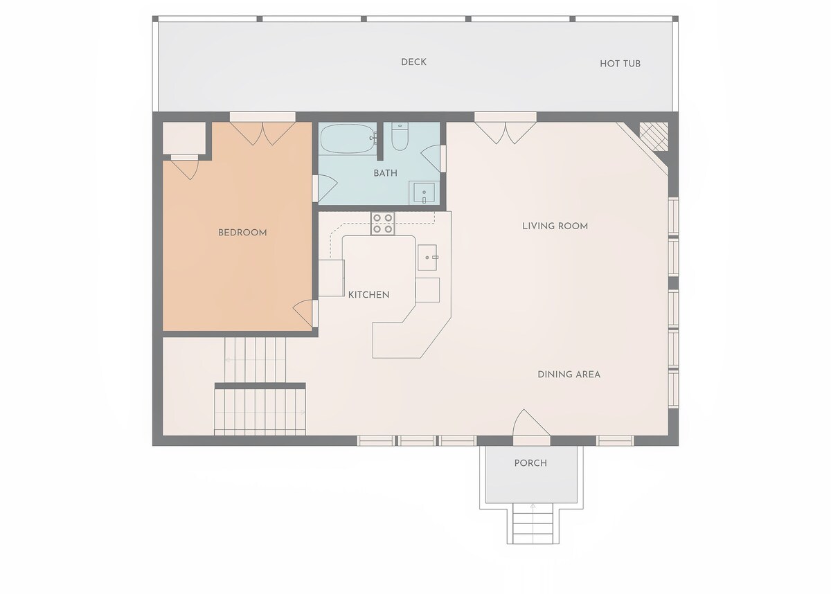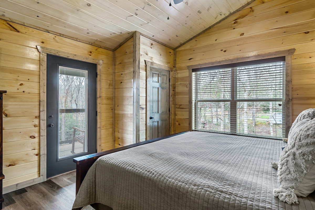 ✹Bedroom 1: Main level, king-sized bed, private access to the bathroom, access to deck
